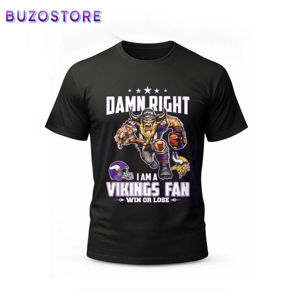 Product Details Damn Right I Am a Vikings Fan Win Or Lose Shirt