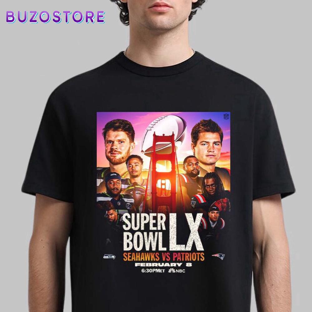 Product Details NFL Super Bowl LX 2026 Seattle Seahawks Vs New England Patriots Unisex T-Shirt