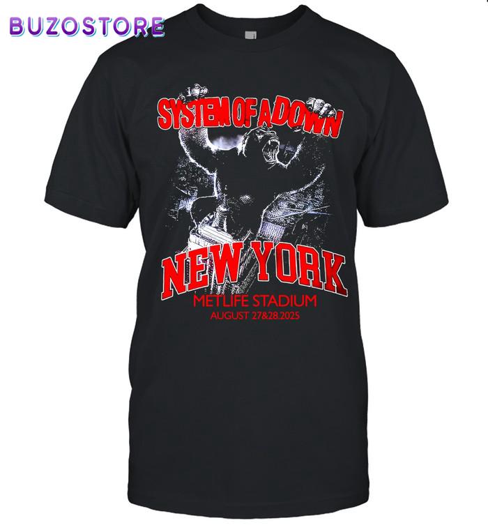 Product Details System Of A Down New York Metlife Stadium 2025 Tee Logo With King Kong Art On August 27 And 28 2025 Unisex T-Shirt